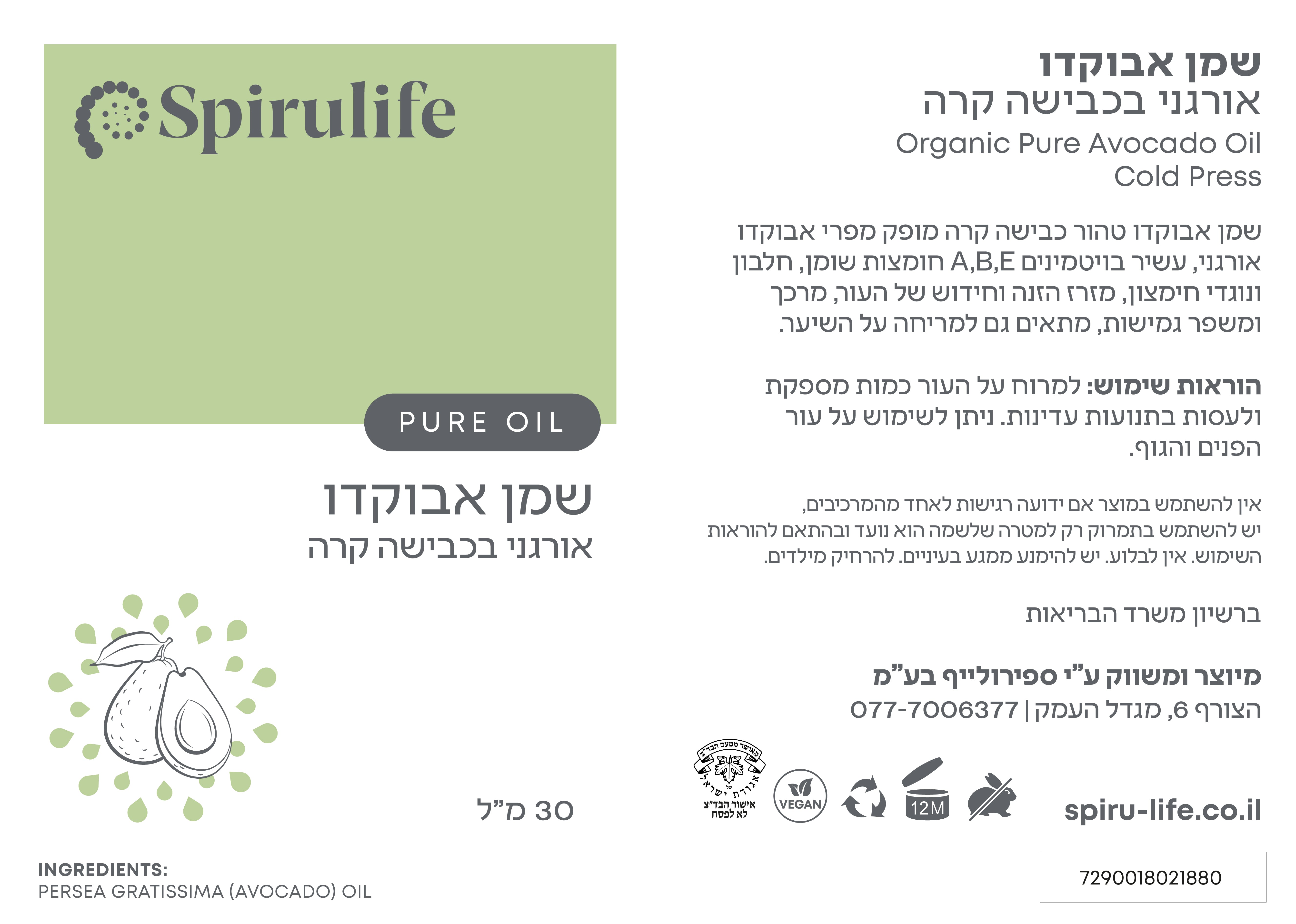 שמן אבוקדו טהור אורגני | כבישה קרה