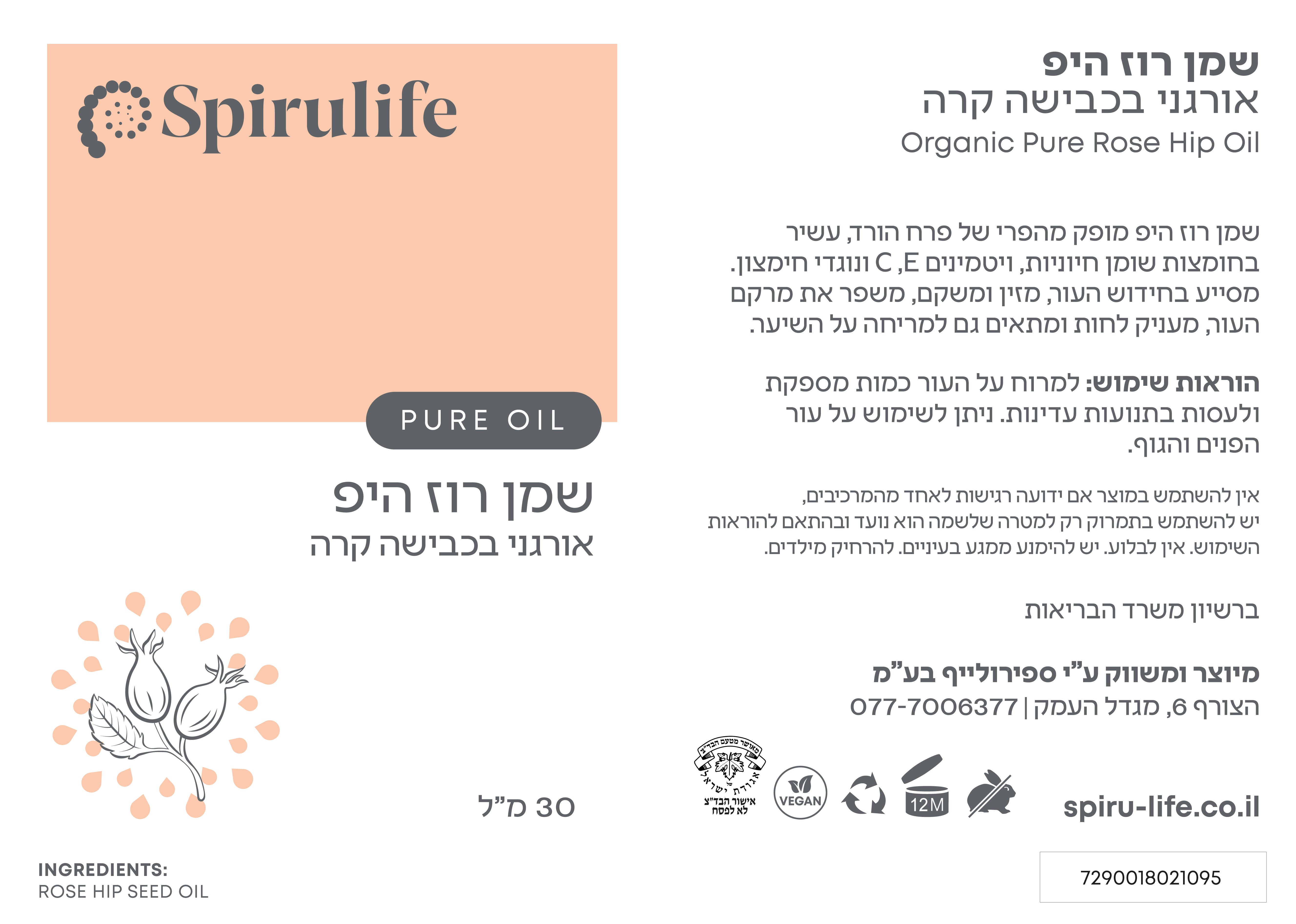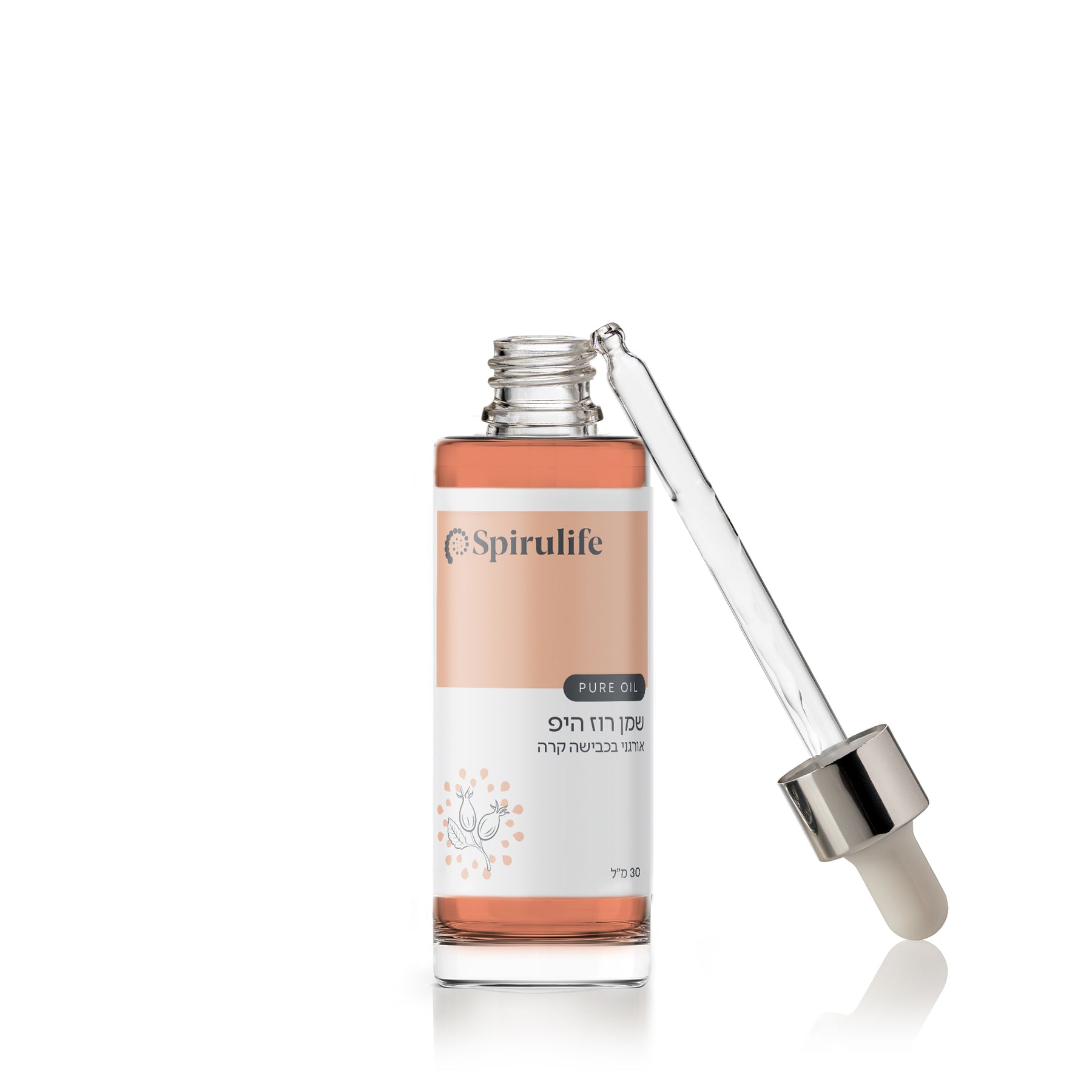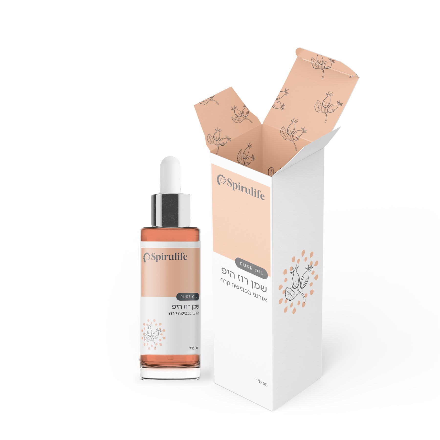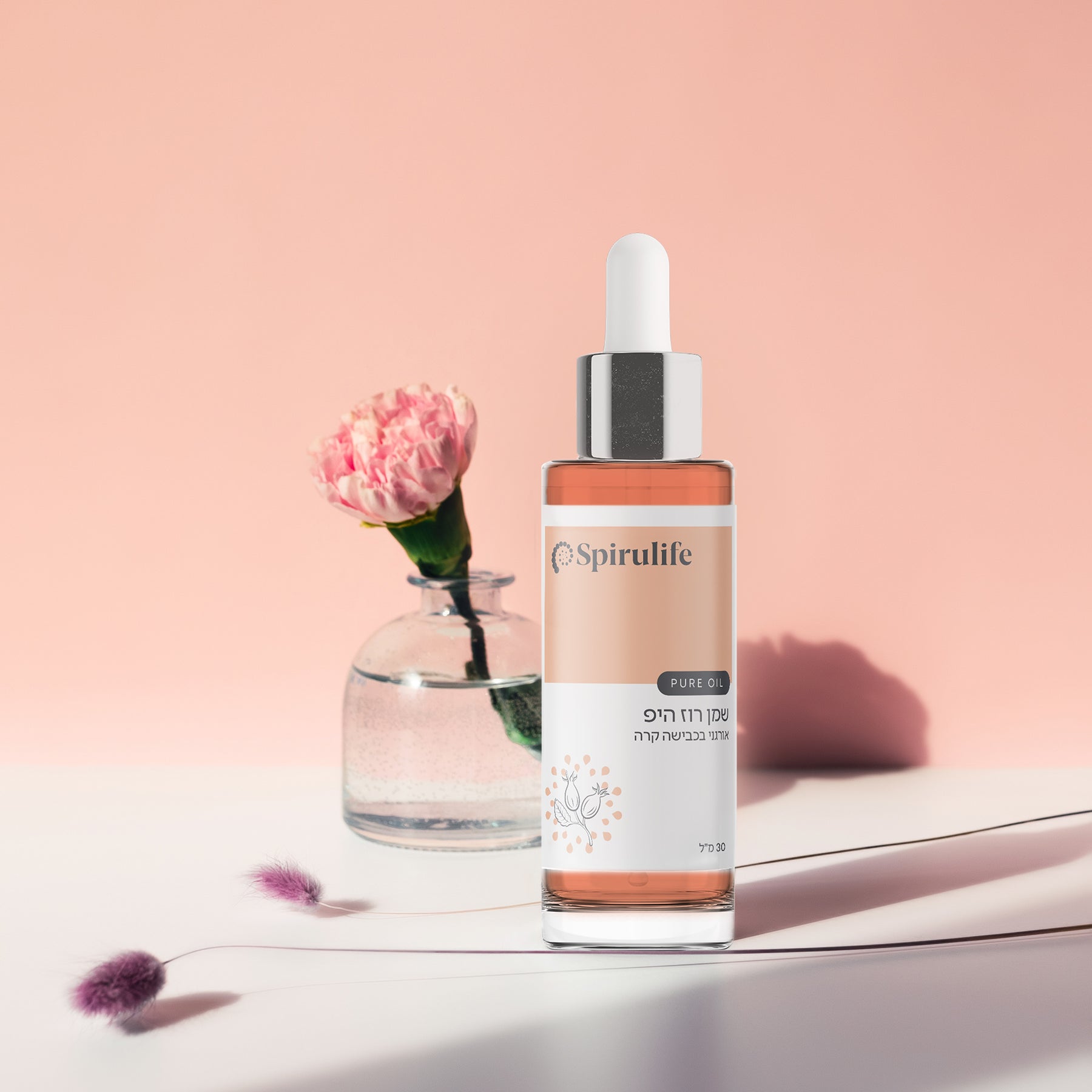 שמן רוז היפ בכבישה קרה מבטיח הזנה עמוקה של העור ומתקן עור מגורה, פגום או פגוע. מושלם לכל סוגי העור, מטפל בצלקות ופיגמנטציה ומעניק ברק וגמישות גם לשיער.