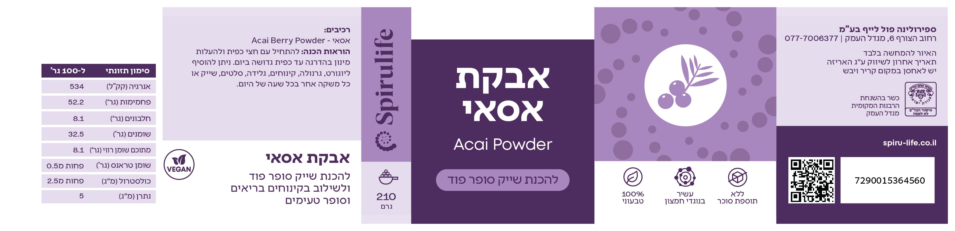 1. אבקת אסאי מיוצרת בתהליך של ייבוש בהקפאה, לצורך שמירה מיטבית על ערכיו התזונתיים של הפרי.