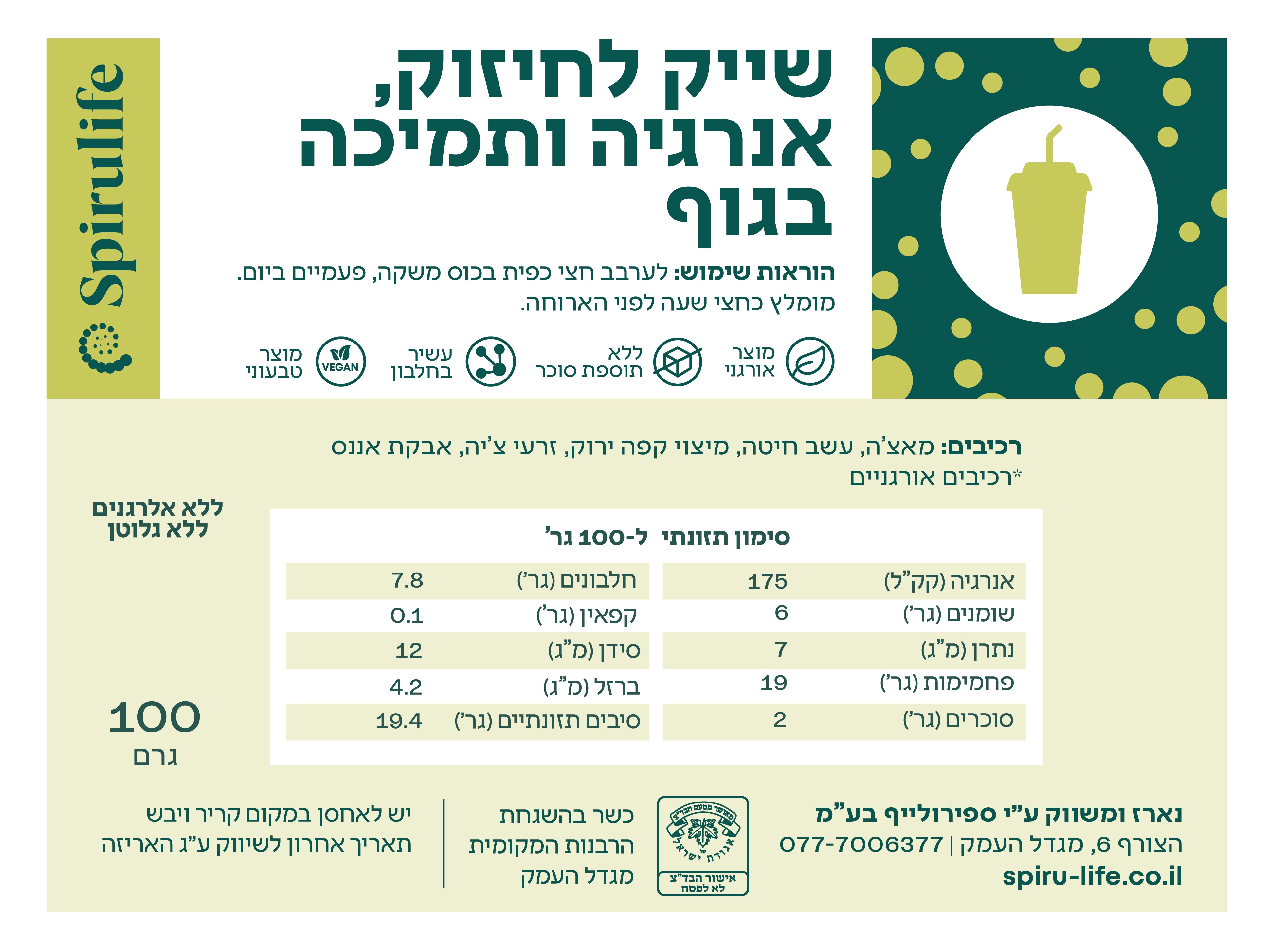 פורמולה ייחודית שלנו !! המסייעת לירידה במשקל, הפחתת התיאבון, הפחתת הרצון למתוקים ופחמימות, שיפור פעילות המעיים והעיכול ושריפת שומנים ועוד