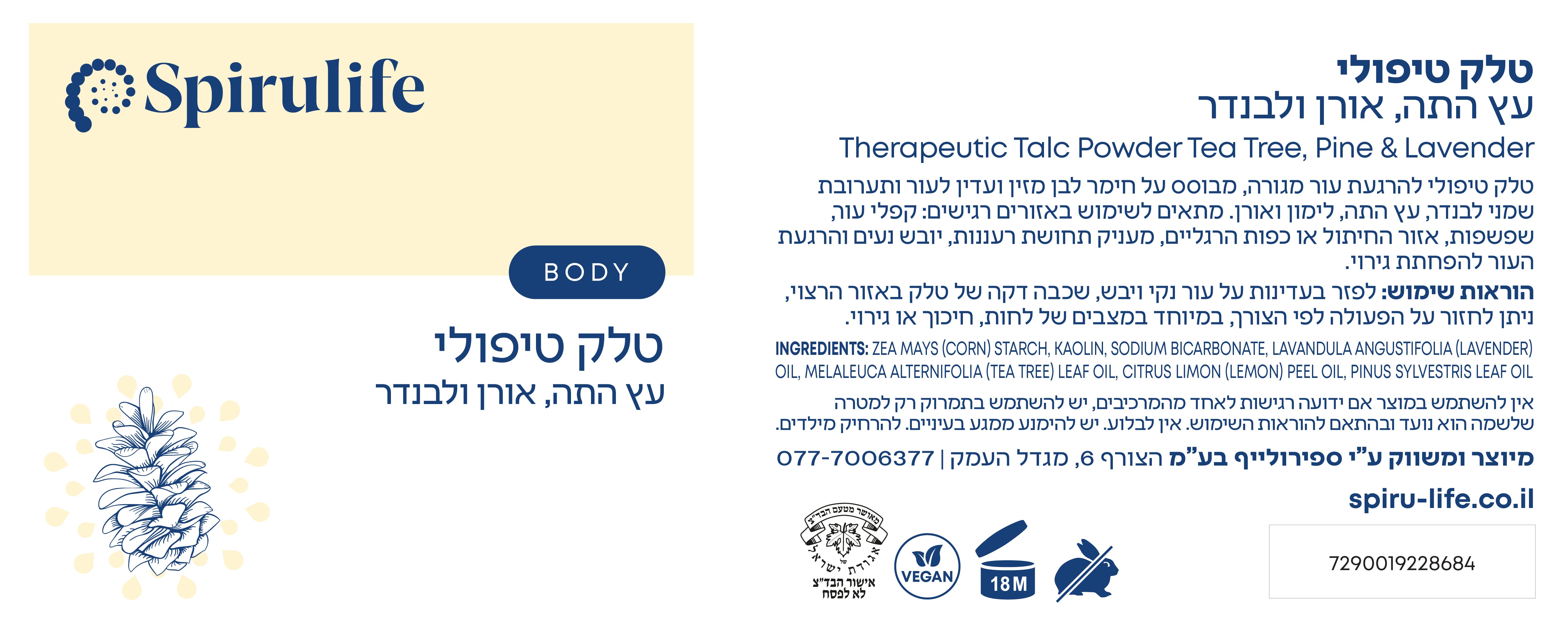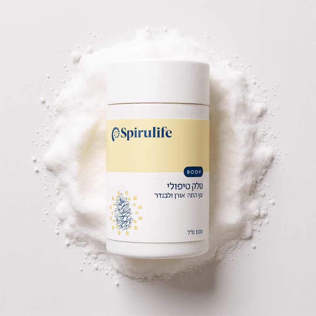 טלק של ספירולינה פול לייף למניעה של גירודים ואדמומיות בעור – לשימוש ברגליים, בין אצבעות הרגליים ועל העור מונע ריח זיעה פשוט מושלם