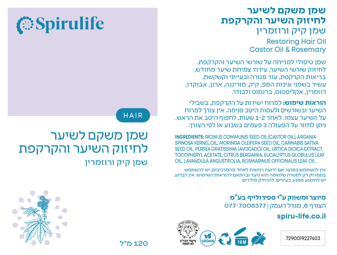 בנוסף, השמן מועשר בתמציות לבנדר שמייצר אפקט מרגיע ורוזמרין, הידוע בסגולותיו לשיפור זרימת הדם בקרקפת ולהאצת צמיחת השיער.