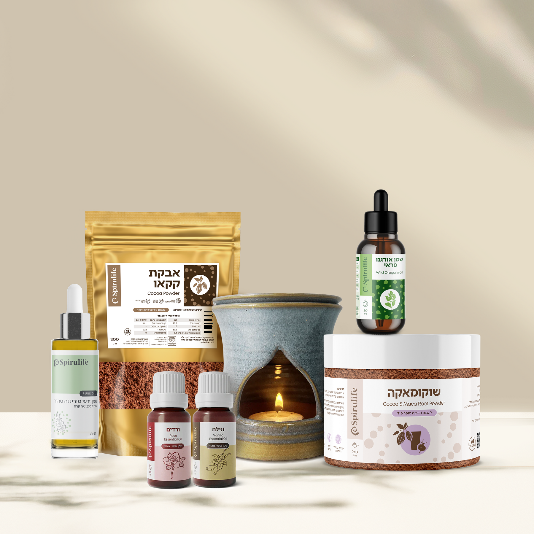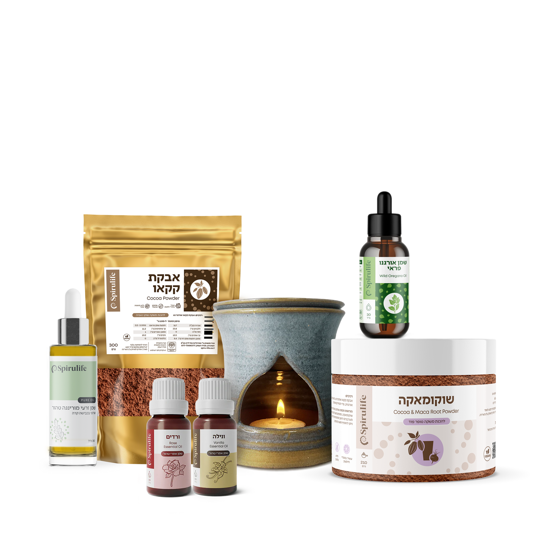 בערכה תמצאו אבקה להכנת משקאות סופר פוד מדהימים, בריאים וטעימים ואבקות לשימוש יומיומי, לצד שמנים לטיפול פנימי, טיפוח העור ויצירת אווירה נעימה בבית. הכל בערכה נפלאה ושימושית אחת, בלי להסתבך ובלי לבחור כל מוצר בנפרד.