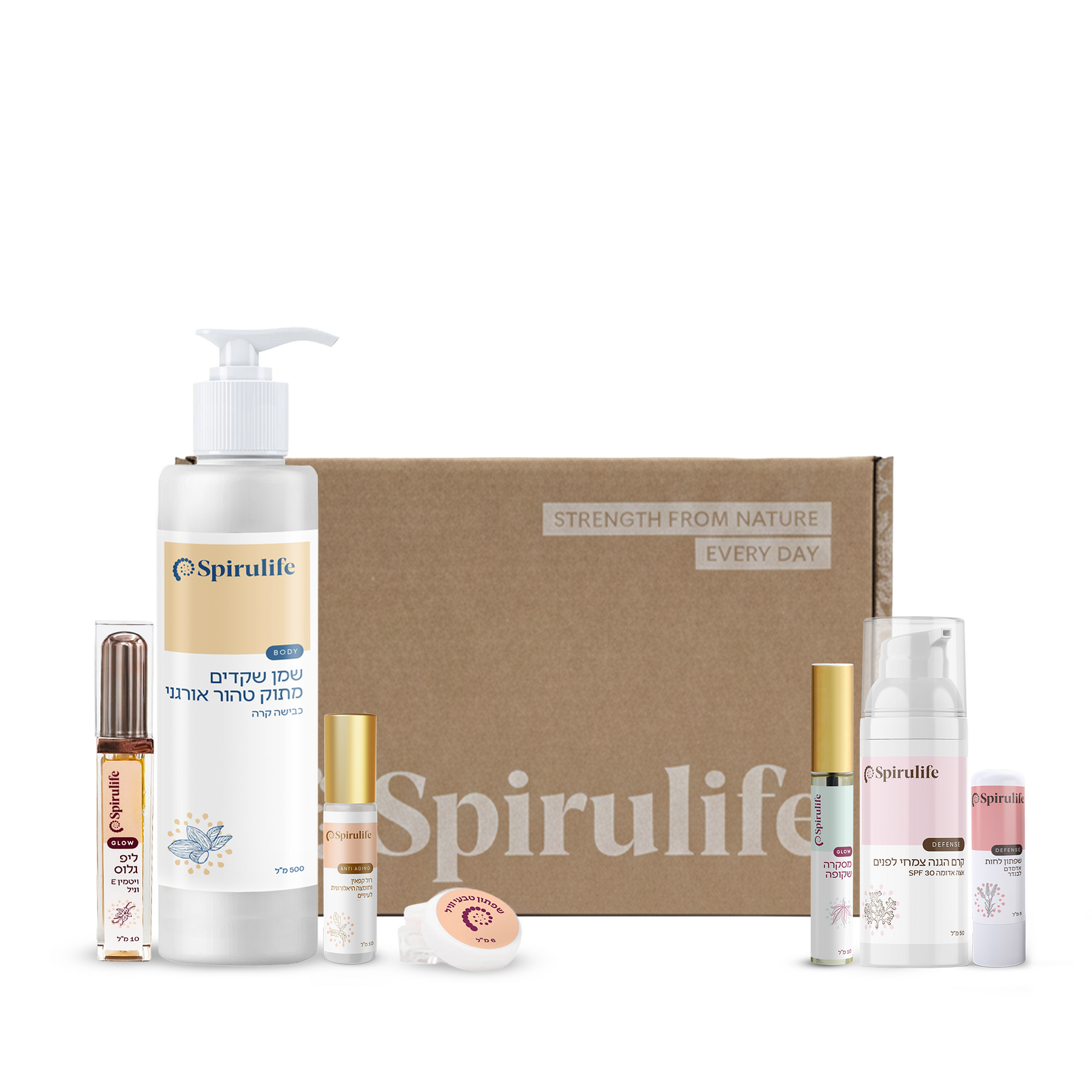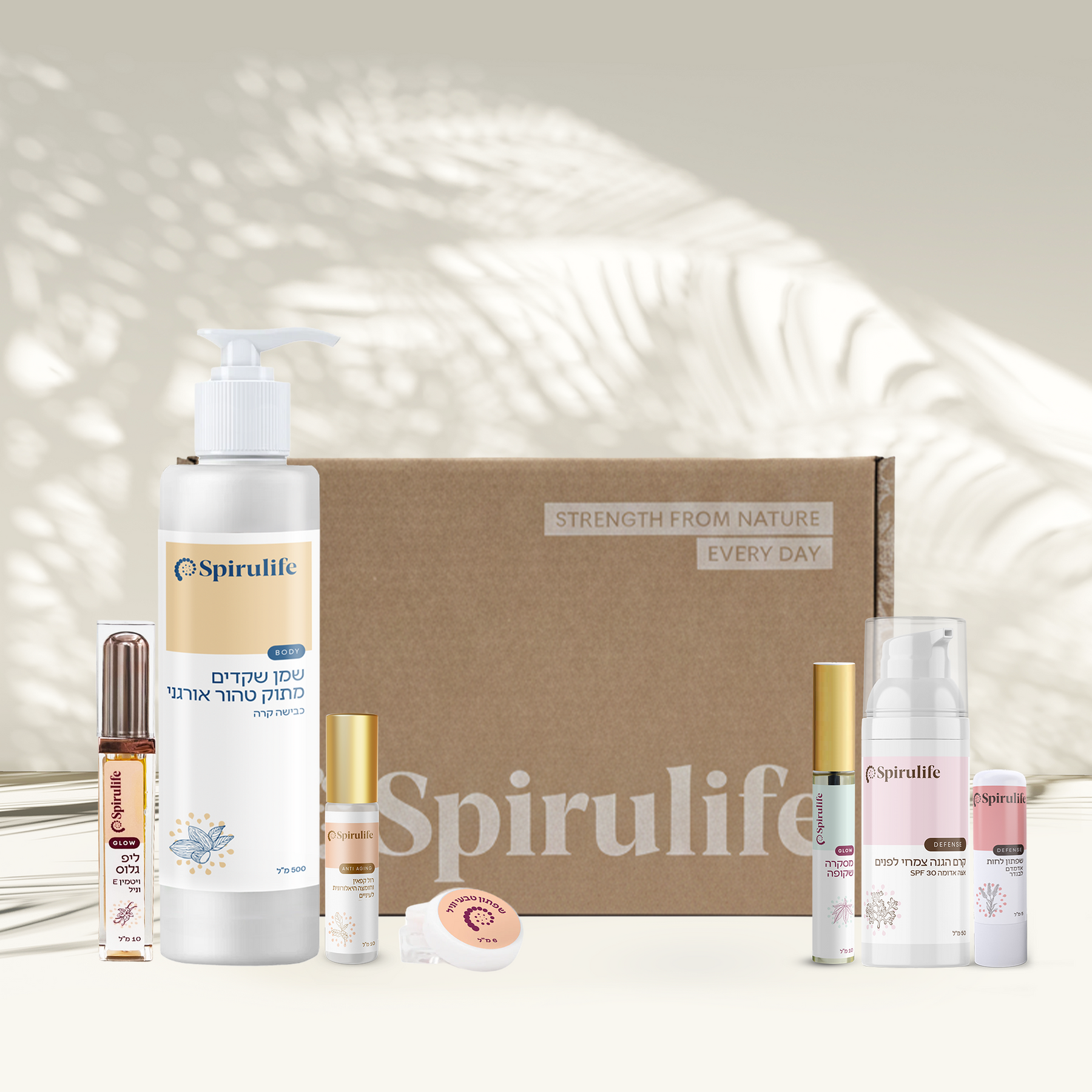 קרם הגנה צמחי לפנים 30SPF | שמן שקדים טהור | מסקרה שקופה לחיזוק ריסים וגבות | רול קפאין וחומצה היאלורונית לעיניים | ליפ גלוס טבעי | שפתון סטיק אדמדם | שפתון טבעי ליובש