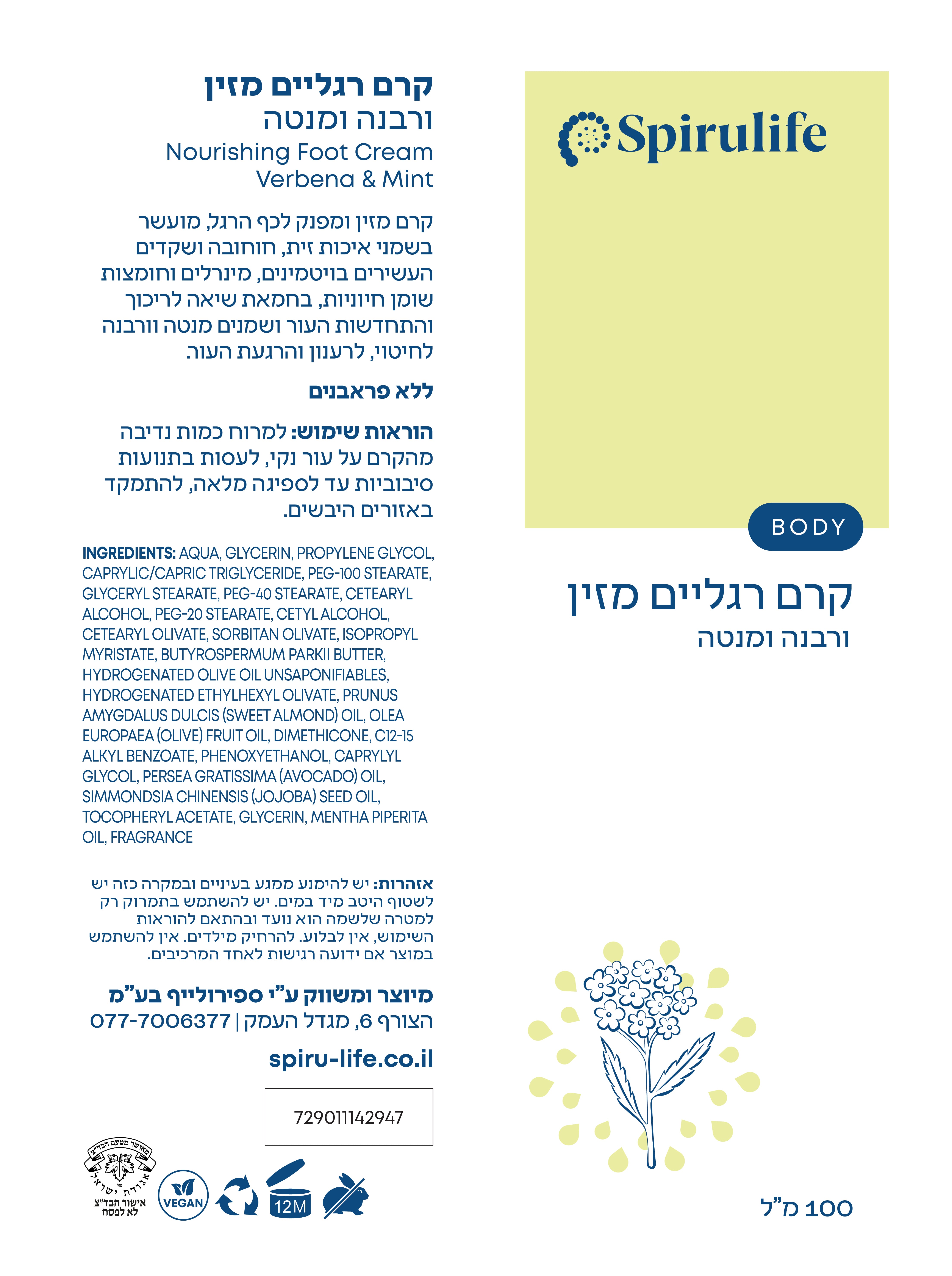 הקרם מזין את עור הרגליים ומרענן בזכות תמציות רבנה ומנטה.